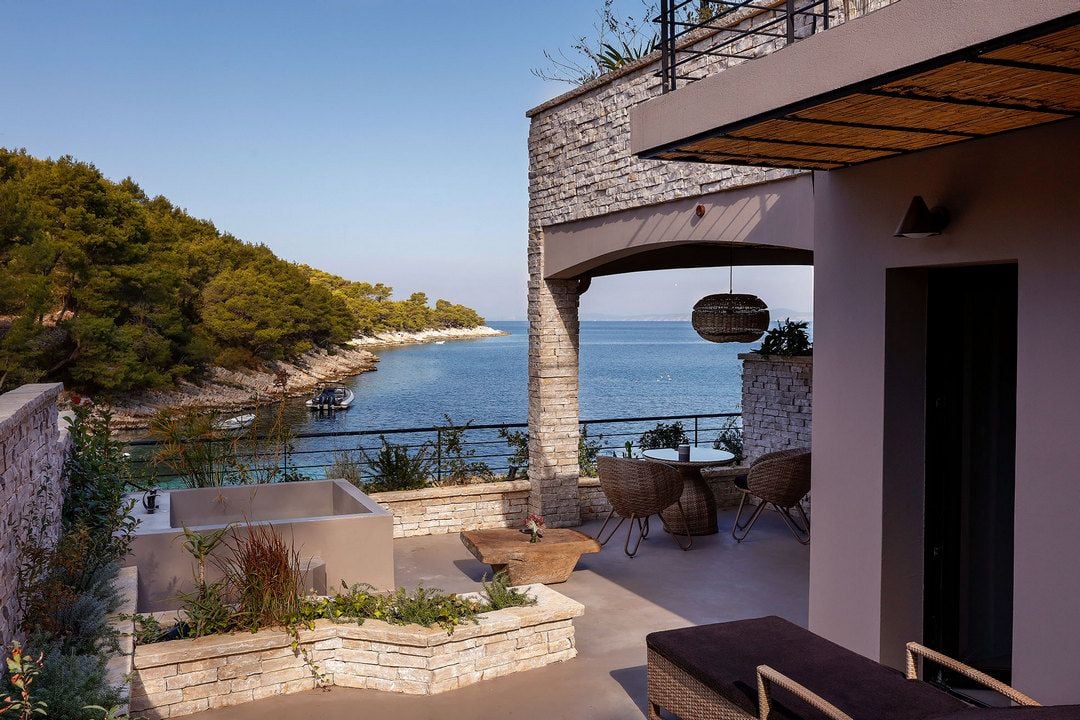 Private terrace with an outdoor bathtub